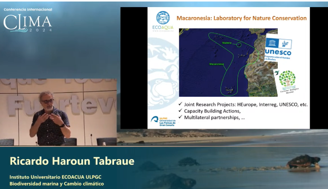 (L) - Ricardo Haroun during his presentation at the International Climate Conference, highlighting the potential of the marine biological corridor in Macaronesia.